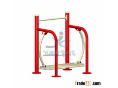 Stand on the sway platform, hold the handrail with both hands utilize the waist strength to move left and right the two legs in bow form .